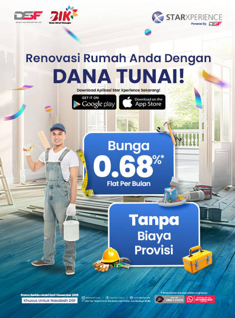 - Berlaku hanya untuk konsumen DSF yang masih memiliki kontrak aktif dan yang sudah berjalan minimal 1/2 tenor.