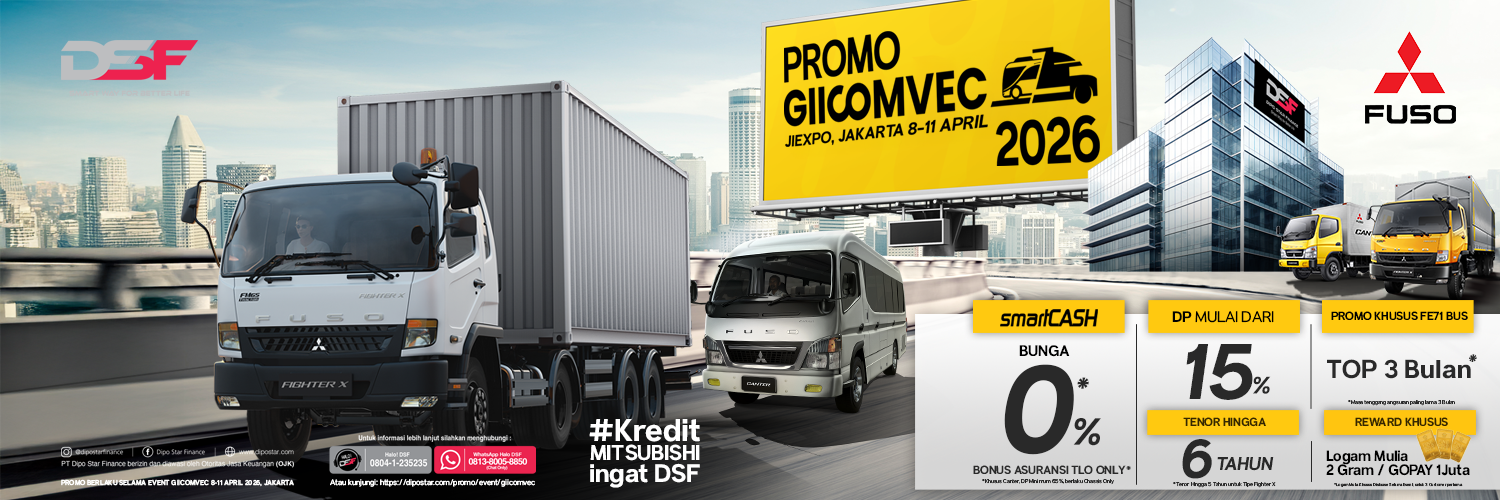 Dipo Star Finance (DSF) hadir di pameran kendaraan komersialGaikindo Indonesia International Commercial Vehicle Expo (GIICOMVEC) di JIEXPO pada tanggal 8-11 April 2026 mendukung penjualan Mitsubishi di Indonesia dengan berbagai penawaran pembiayaan menarik seperti :