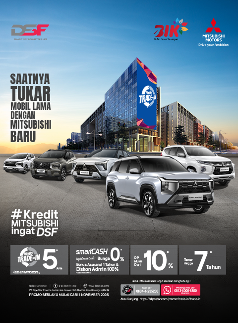 - Pembelian unit Mitsubishi baru wajib melalui pembiayaan dari Dipo Star Finance (DSF).